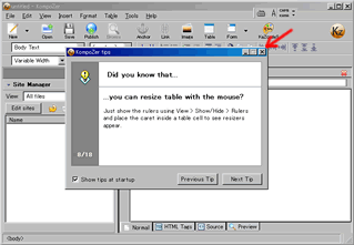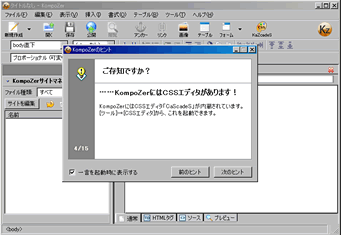 KompoZerを初めて起動すると、以下のようなダイアログボックスが表示されます。