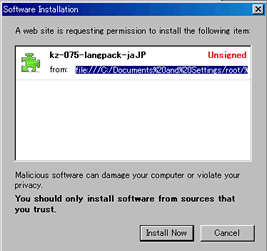 言語ファイルのインストールの有無を聞いてきますので、"Install Now"のボタンを押します。